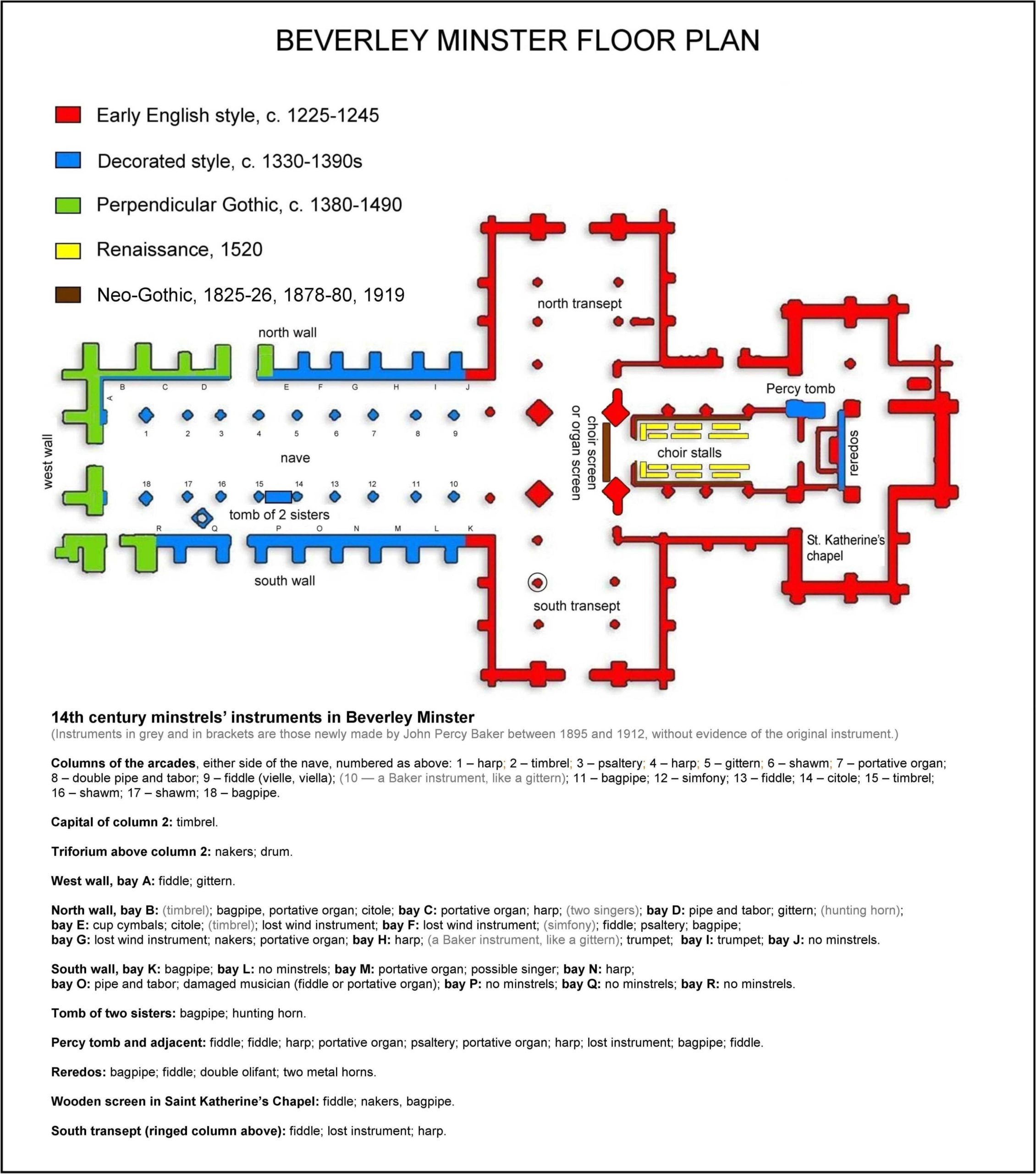 Beverley Minster floor plan and instrument inventory