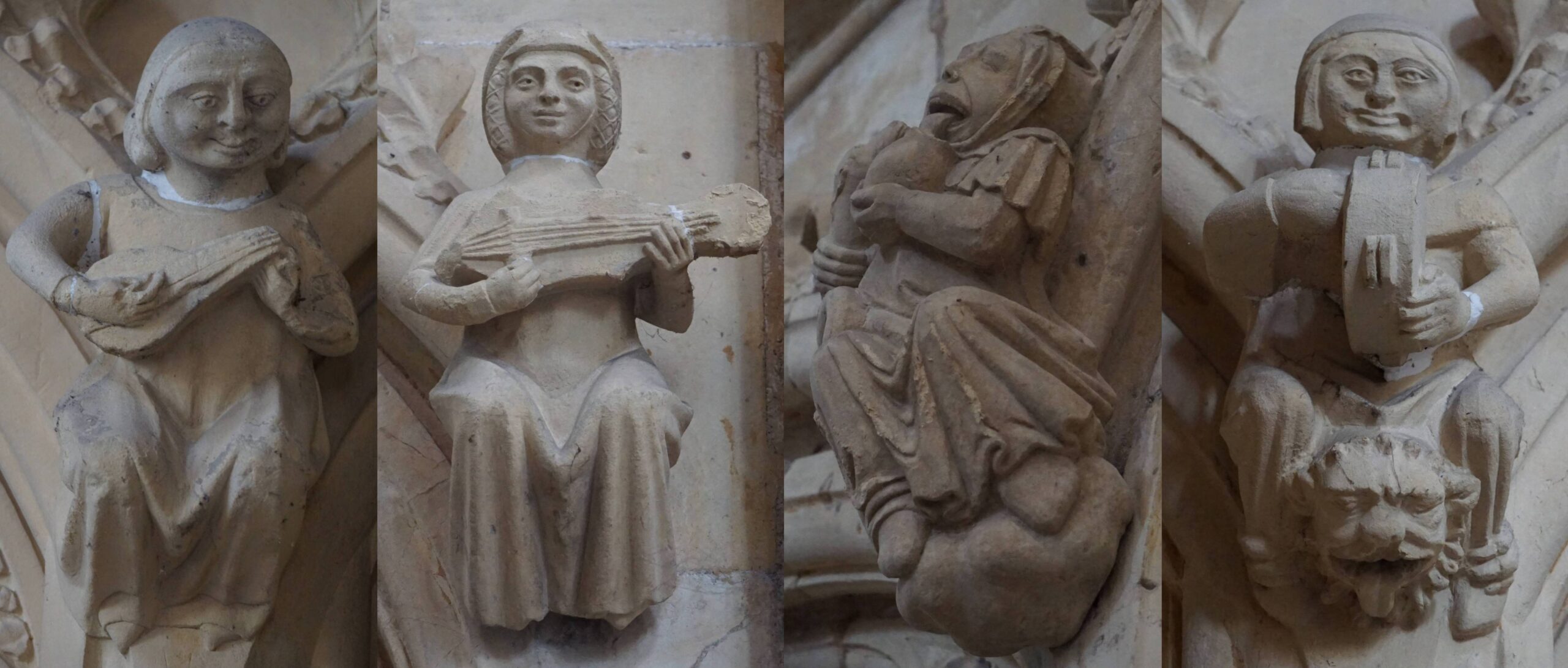 Finally, Julia Perratore’s chapter, Beverley Minster’s 14th Century Architectural Sculptures in a Devotional Context, in a book edited by Elisa A. Foster, Julia Perratore, and Steven Rozenski, Devotional Interaction in Medieval England and its Afterlives (2018, Leiden: Brill), includes among her topics a discussion of what role the sculpted musicians might have played in the experience of medieval worshippers at the Minster. Julia Perratore is Assistant Curator of Medieval Art at The Met Museum and visiting Assistant Professor at Fordham University, both in New York. Since she specialises in western medieval sculpture from 1100 to 1500, we should expect the most up to date and accurate information.