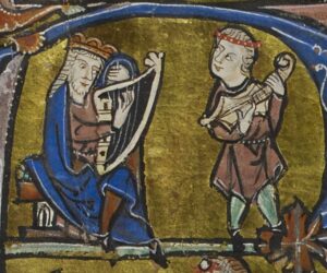 Right: King David playing a psaltery in a painting of 1500–50 by Venetian artist,