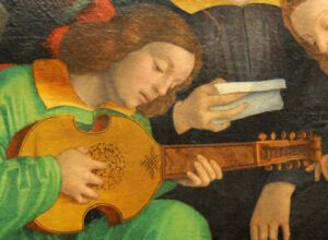 Right: lute in Coronation of the Virgin by Master of the Évora Altarpiece, c. 1490-1500